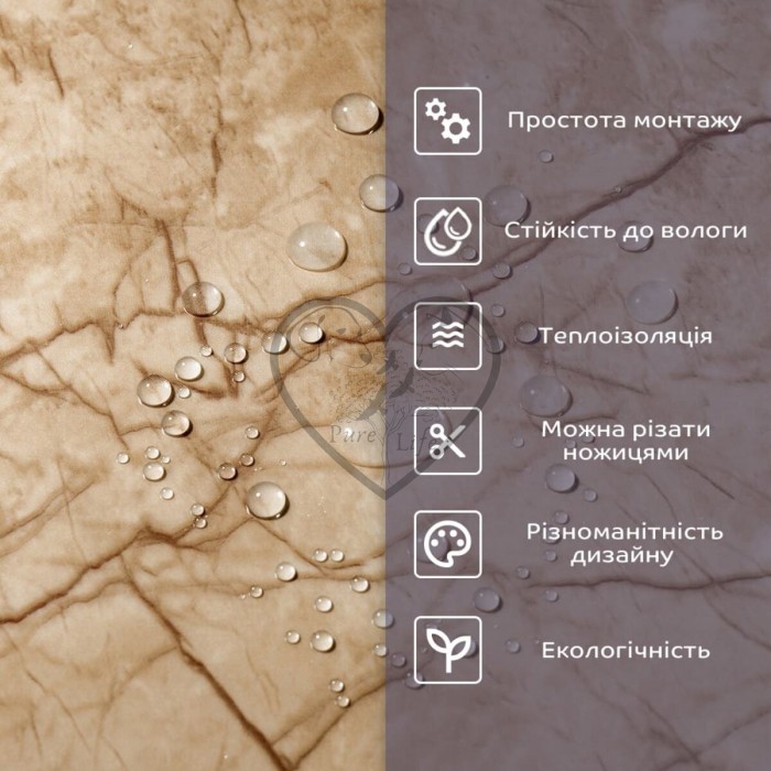 • 2. Стійкість до вологи: матеріал стійкий до впливу вологи та пари, а також до появи плісняви, що робить його придатним для використання у приміщеннях з високою вологістю, таких як ванни та кухні. Плитка підходить для створення фартуха кухні, можна клеїти біля плити на відстані не менше ніж 20-25 см;