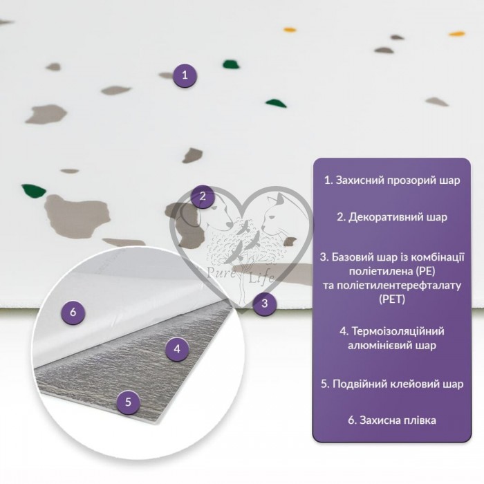 Матеріал: PE+PET, складається з суміші двох полімерів: поліетилену (PE) та поліетилентерефталату (PET)