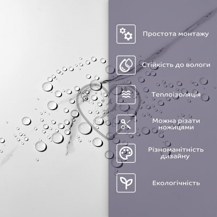 • 2. Стійкість до вологи: матеріал стійкий до впливу вологи та пари, а також до появи плісняви, що робить його придатним для використання у приміщеннях з високою вологістю, таких як ванни та кухні. Плитка підходить для створення фартуха кухні, можна клеїти біля плити на відстані не менше ніж 20-25 см;