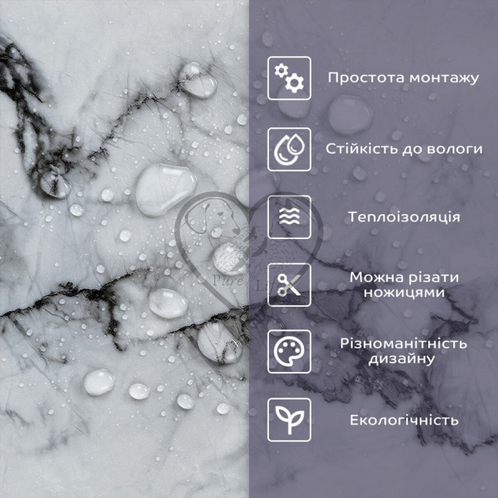 • 2. Стійкість до вологи: матеріал стійкий до впливу вологи та пари, а також до появи плісняви, що робить його придатним для використання у приміщеннях з високою вологістю, таких як ванни та кухні. Плитка підходить для створення фартуха кухні, можна клеїти біля плити на відстані не менше ніж 20-25 см;