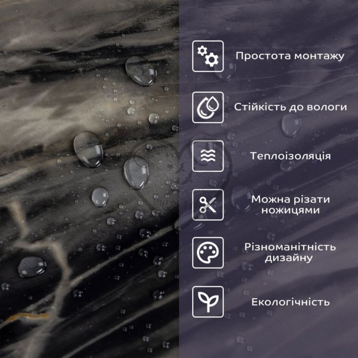 • 2. Стійкість до вологи: матеріал стійкий до впливу вологи та пари, а також до появи плісняви, що робить його придатним для використання у приміщеннях з високою вологістю, таких як ванни та кухні. Плитка підходить для створення фартуха кухні, можна клеїти біля плити на відстані не менше ніж 20-25 см;