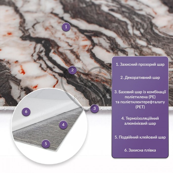 - 3. Ізоляція: плитка має звукову та теплоізоляцію завдяки наявності повітряних прошарків та додатковому алюмінієвому шару;