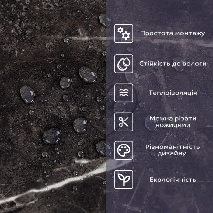 • 2. Стійкість до вологи: матеріал стійкий до впливу вологи та пари, а також до появи плісняви, що робить його придатним для використання у приміщеннях з високою вологістю, таких як ванни та кухні. Плитка підходить для створення фартуха кухні, можна клеїти біля плити на відстані не менше ніж 20-25 см;