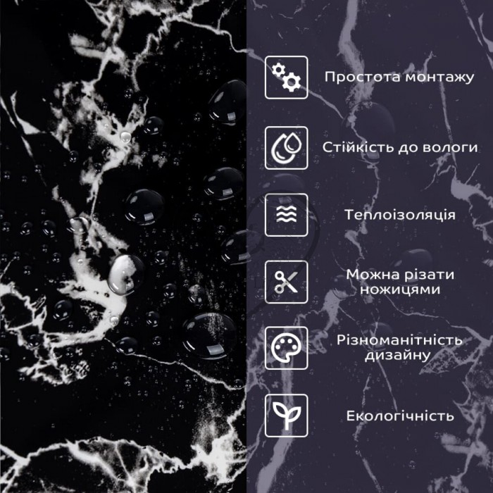 • 2. Стійкість до вологи: матеріал стійкий до впливу вологи та пари, а також до появи плісняви, що робить його придатним для використання у приміщеннях з високою вологістю, таких як ванни та кухні. Плитка підходить для створення фартуха кухні, можна клеїти біля плити на відстані не менше ніж 20-25 см;