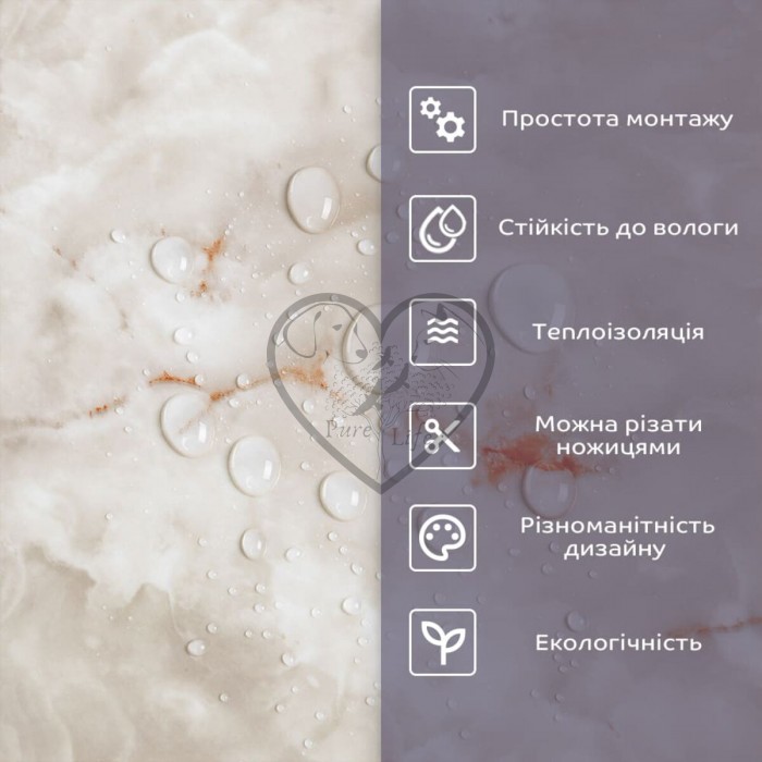 • 2. Стійкість до вологи: матеріал стійкий до впливу вологи та пари, а також до появи плісняви, що робить його придатним для використання у приміщеннях з високою вологістю, таких як ванни та кухні. Плитка підходить для створення фартуха кухні, можна клеїти біля плити на відстані не менше ніж 20-25 см;