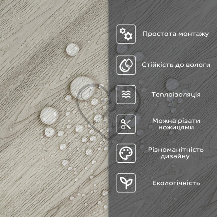 • 2. Стійкість до вологи: матеріал стійкий до впливу вологи та пари, а також до появи плісняви, що робить його придатним для використання у приміщеннях з високою вологістю, таких як ванни та кухні. Плитка підходить для створення фартуха кухні, можна клеїти біля плити на відстані не менше ніж 20-25 см;