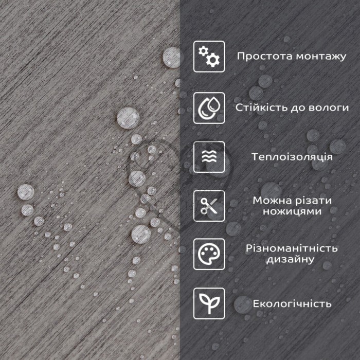 • 2. Стійкість до вологи: матеріал стійкий до впливу вологи та пари, а також до появи плісняви, що робить його придатним для використання у приміщеннях з високою вологістю, таких як ванни та кухні. Плитка підходить для створення фартуха кухні, можна клеїти біля плити на відстані не менше ніж 20-25 см;