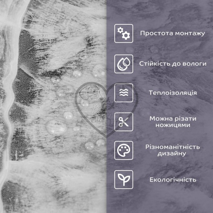 • 2. Стійкість до вологи: матеріал стійкий до впливу вологи та пари, а також до появи плісняви, що робить його придатним для використання у приміщеннях з високою вологістю, таких як ванни та кухні. Плитка підходить для створення фартуха кухні, можна клеїти біля плити на відстані не менше ніж 20-25 см;