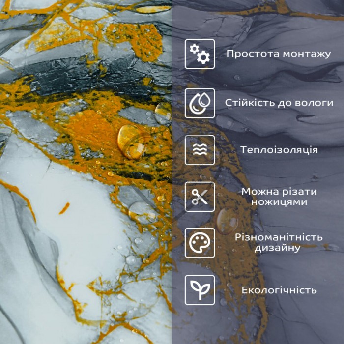 • 2. Стійкість до вологи: матеріал стійкий до впливу вологи та пари, а також до появи плісняви, що робить його придатним для використання у приміщеннях з високою вологістю, таких як ванни та кухні. Плитка підходить для створення фартуха кухні, можна клеїти біля плити на відстані не менше ніж 20-25 см;