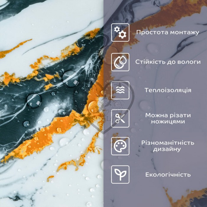 • 2. Стійкість до вологи: матеріал стійкий до впливу вологи та пари, а також до появи плісняви, що робить його придатним для використання у приміщеннях з високою вологістю, таких як ванни та кухні. Плитка підходить для створення фартуха кухні, можна клеїти біля плити на відстані не менше ніж 20-25 см;